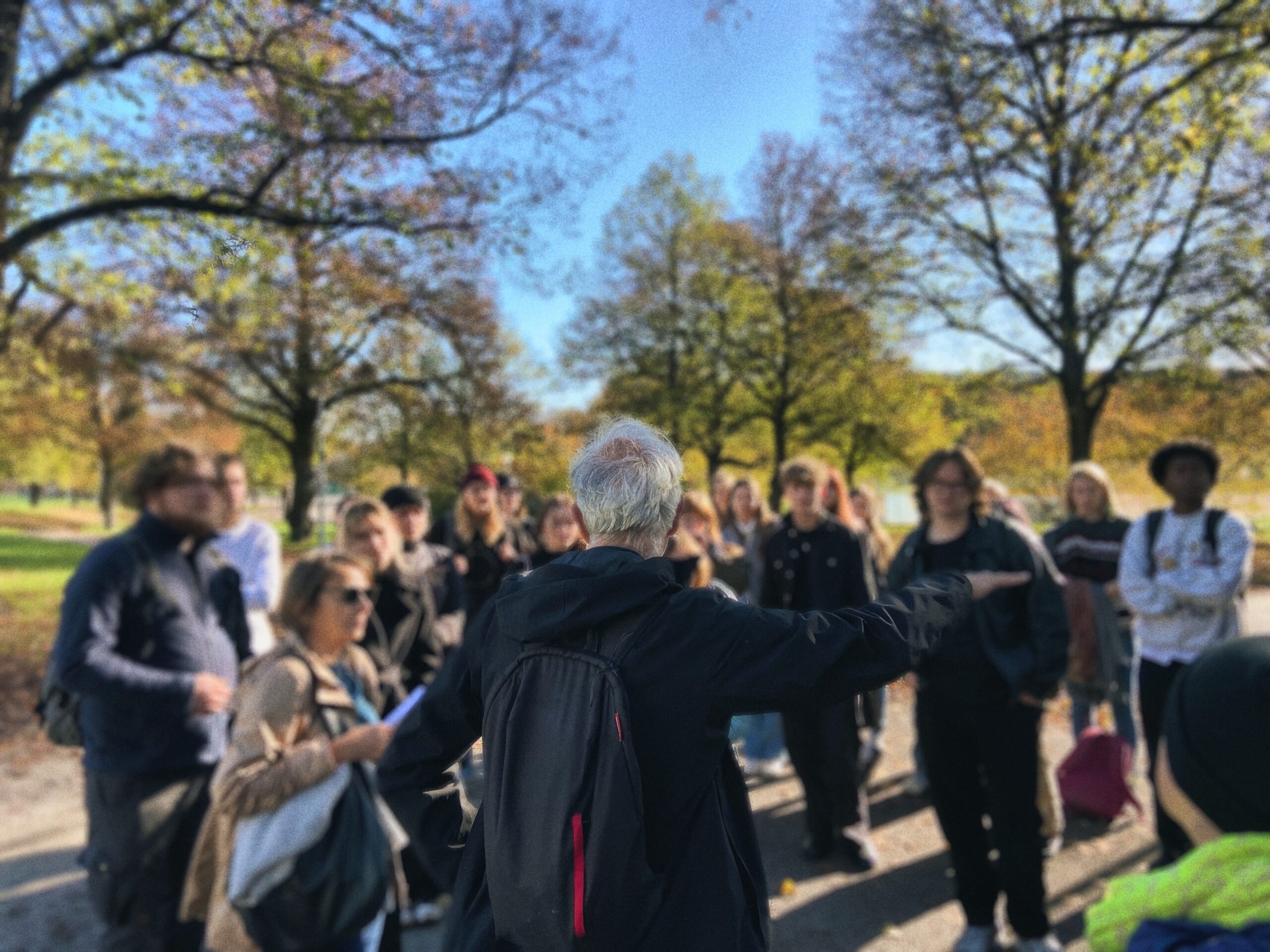 Am 27. Oktober 2022 begrüßte der Werkbund Bayern die jungen Teilnehmerinnen und Teilnehmer des Werkstattjahres der Werkbund Werkstatt Nürnberg während ihrer Exkursion nach München. Anlass für das Exkursionsziel war das 50jährige Jubiläum der XX. Olympischen Sommerspiele im Jahr 1972 in München. Martin Schnitzer, stellvertretender Vorsitzender des Werkbund Bayern, und Petra Seydel, Architektin und Werkbund-Mitglied, führten gemeinsam durch das Olympiagelände und erläuterten wichtige Aspekte zu Visuellem Erscheinungsbild, Zeltdacharchitektur, Olympiadorf und demokratischem Grün. Auch der Besuch des Gedenkortes zum Olympia-Attentat war Teil des Programms.