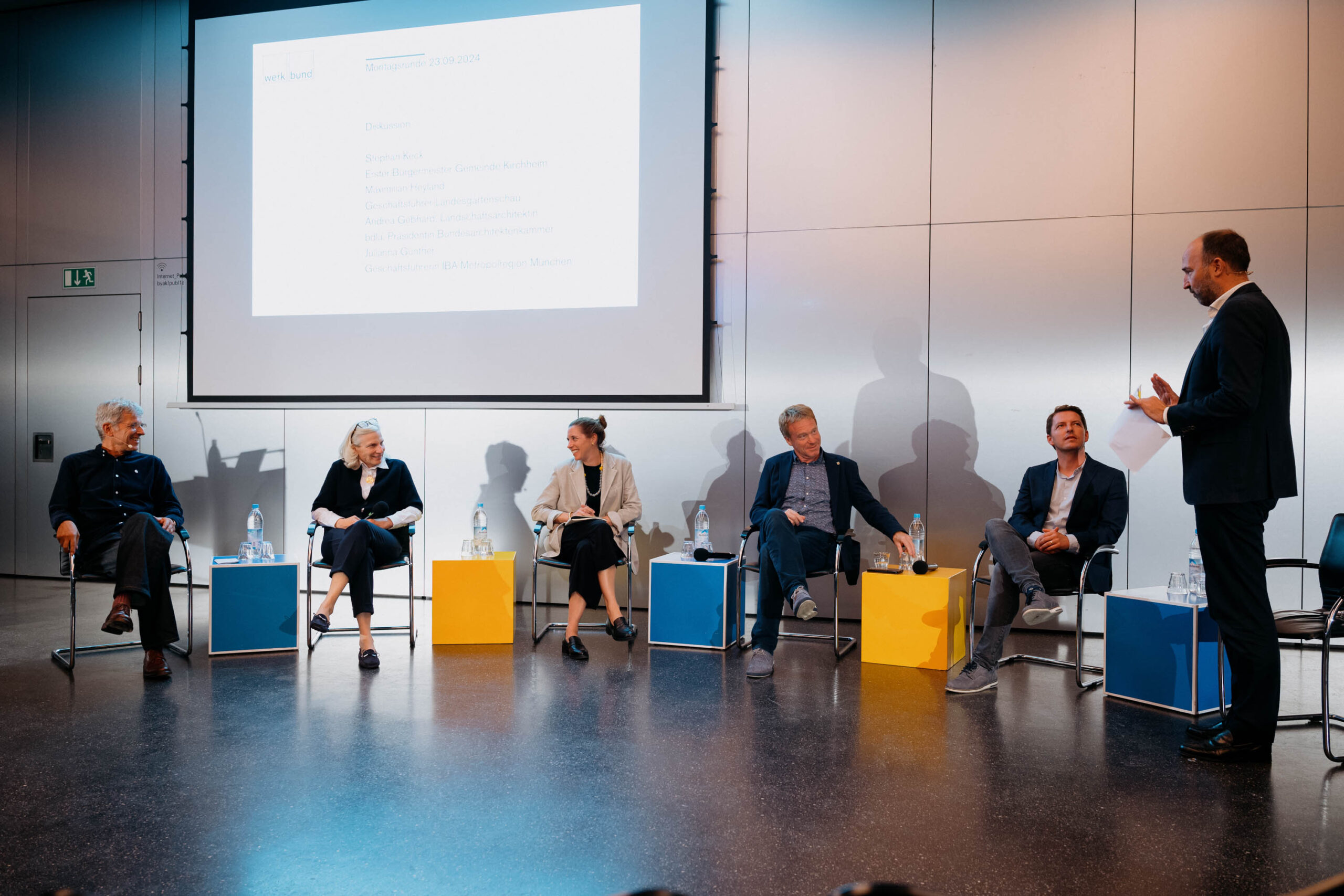 Prof. Clemens Richarz, 1. Vizepräsident der Bayerischen Architektenkammer, Werner Frosch, 1. Vorsitzender Deutscher Werkbund Bayern e.V., Georg Götze, 1. Stellvertretender Vorsitzender BDA Bayern und Dr.-Ing. Vinzenz Dufter, Bayerischer Landesverein für Heimatpflege e.V., gingen in ihren Grußworten auf die aktuellen Herausforderungen ein, bevor Christian Schuberth, Architekt, Vorstand Deutscher Werkbund Bayern e.V. und Werkbund-Mitglied Matthias Schmuderer, Geschäftsführer Solar for Schools Bildung gGmbH, die Diskussion einleiteten.