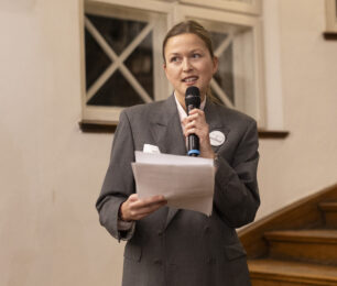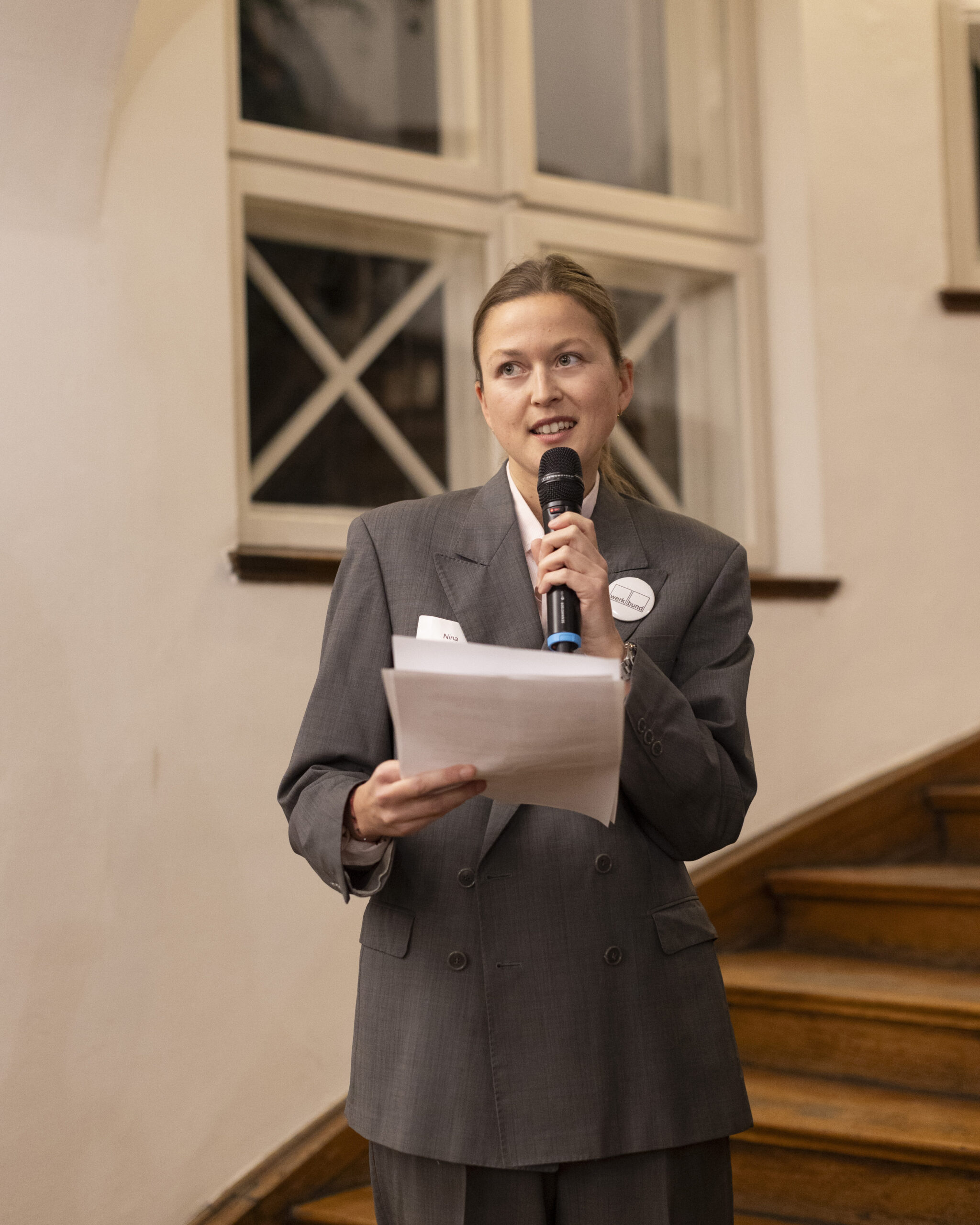 Nina von der Recke sprach auch aktuelle Herausforderungen wie die anstehende Veränderung der räumlichen Situation in der Seidlvilla an. Sie dankte allen Kooperationspartner:innen, Förderern und Engagierten, die die Arbeit des Werkbunds im vergangenen Jahr ermöglicht haben. Mit ihren Neujahrswünschen verband sie die Hoffnung, dass der Werkbund auch im Jahr 2026 weiterhin lebendig, engagiert und gesellschaftlich wirksam sein werde.
