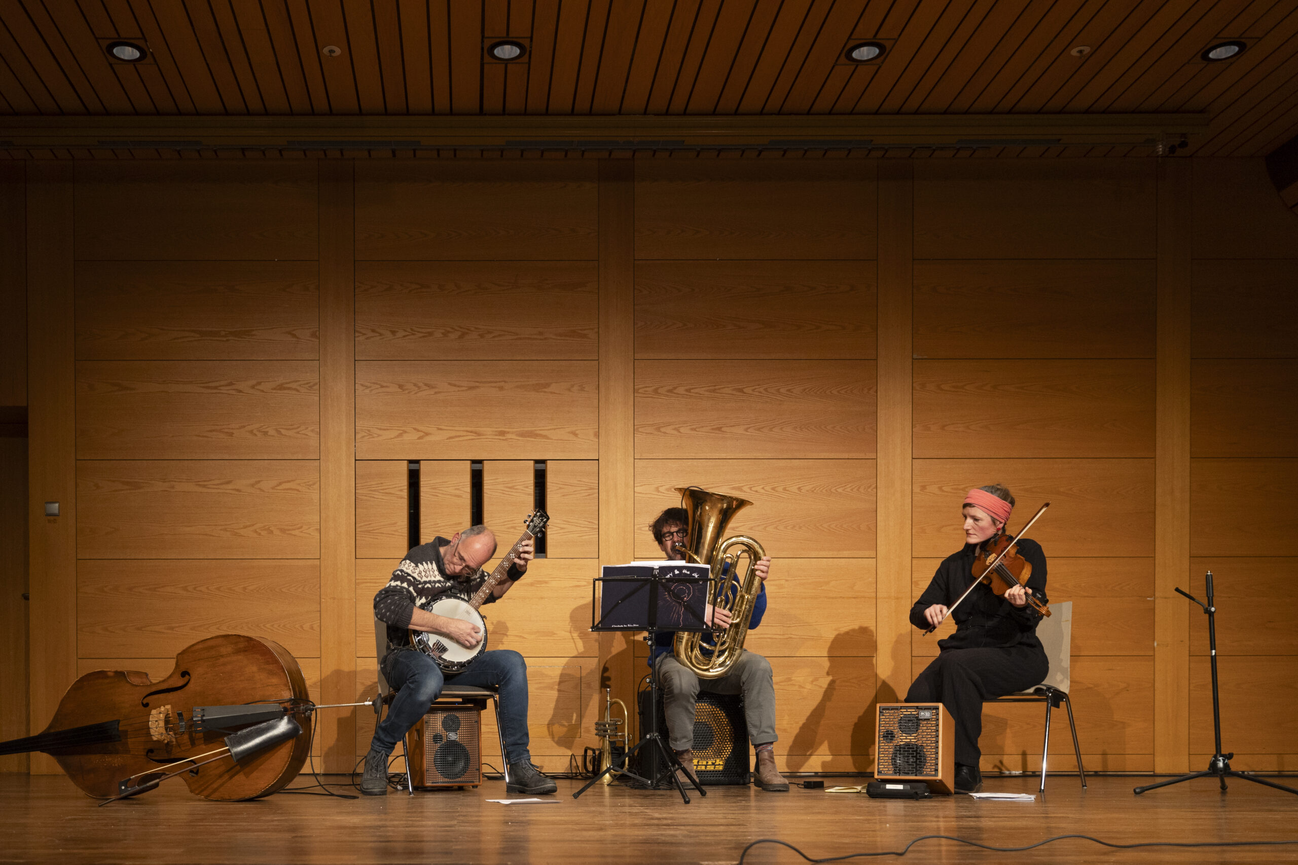 Im Anschluss bereicherten Evi Keglmaier, Micha Acher und Alex Haas den Abend mit einem schwungvollen Konzert, bevor im Foyer bei Speis und Trank ausgelassen gefeiert wurde. Dort wurde die Ausstellung „Atlas des Gemeinsamen“ gezeigt, die anlässlich des Deutschen Werkbundtags 2023 entstanden ist.