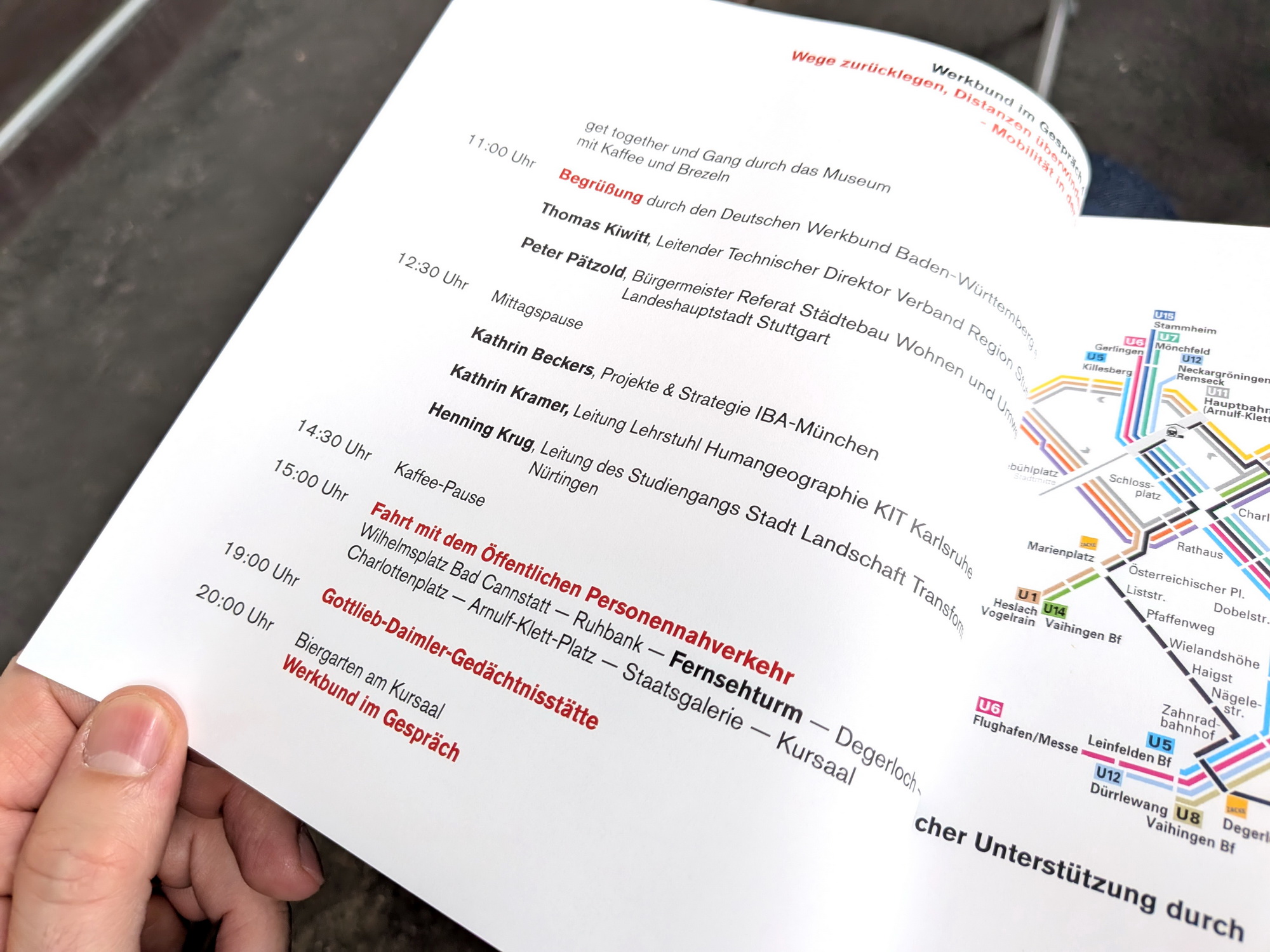 Am Vormittag fanden zwischen den sehr vielfältigen Exponaten des Museums fünf Vorträge zum Thema statt. Der Nachmittag war geprägt durch die gemeinsame Fahrt mit den Stadtbahnen zum Stuttgarter Fernsehturm, von wo der Blick über die Region ein anschauliches Bild der Verknüpfung von Landschaft, Topographie mit den unterschiedlichen Verkehrsnetzen ergab. Für die Rückfahrt nach Bad Cannstatt wurden der Bus, die Zahnradbahn „Zacke“ und weitere Stadtbahnen genutzt.