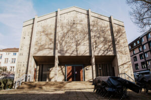 Die Gründung der Spielstätte wurde ermöglicht durch die Zusammenarbeit von unterschiedlichen Akteur*innen aus Kunst, Kirche und Stadt. Die in die Trinitatiskirche eingebaute Theaterarchitektur ermöglicht eine direkte Begegnung zwischen Kunst und Betrachter*innen. Die Geschichte des Gebäudes und dessen Ursprung als Kirchenraum ist in der denkmalgeschützten Architektur von Helmut Striffler weithin spürbar und schafft eine einzigartige Atmosphäre für die künstlerische Produktion. Die Beton-Glas-Architektur, die dem Brutalismus zugeordnet wird, gibt einen außergewöhnlichen Rahmen sowohl für das Kunstschaffen als auch für das Kunstbetrachten. Teile der Kirchengeschichte – wie die Kirchenbänke aus Holz – wurden in das Theater integriert und lassen die Geschichte des Hauses bis heute spürbar werden.
